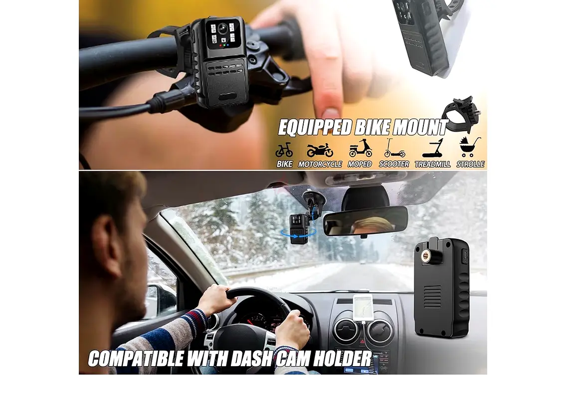 - Included mounts: Bike handlebar mount and dash cam/car mount