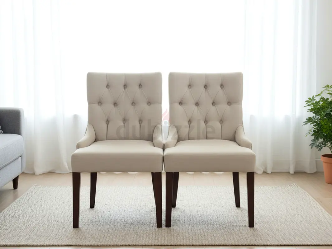 These are two elegant Marina Home Tufted Dining Armchairs.