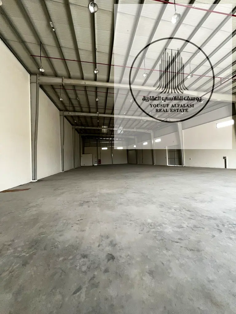 مستودع مميز للإيجار بمساحة كبيرة وكهرباء قوية في أم القيوين مساحه 10 الف قدم