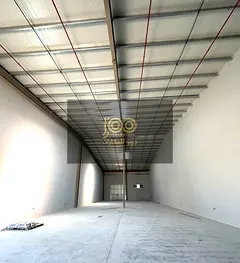 مستودع مع حمام وبابين الكهرباء 45 كيلو واط مساحات واسعة مناسبة لجميع انواع البضائع