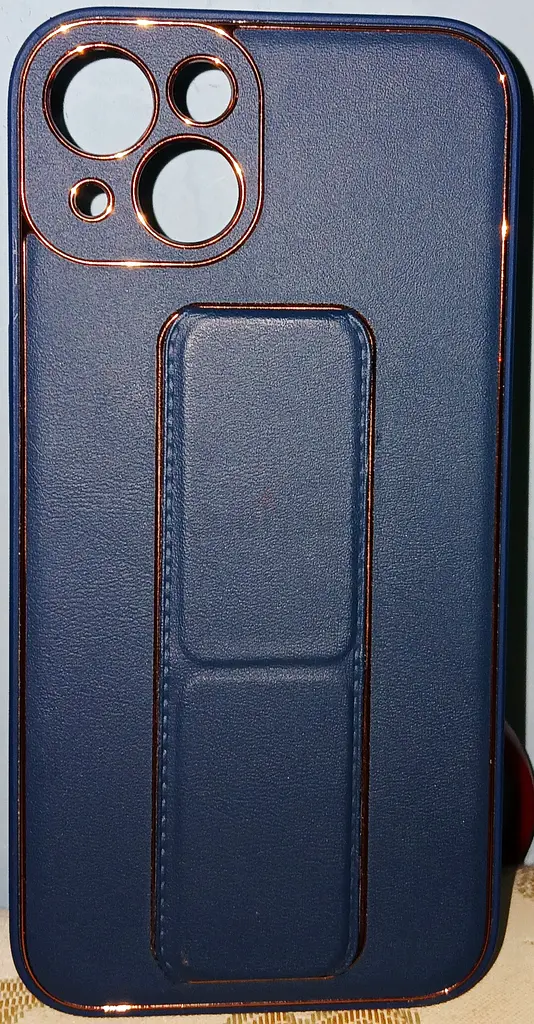 I'm selling a brand new blue leather phone case designed specifically for iPhone 13, iPhone 13 Pro, and iPhone 14. The case features elegant bronze lining that complements its sleek design. It not only provides a premium look and feel but also ensures your phone is protected from everyday wear and tear. With this case, you get a sturdy and stylish accessory for your device.