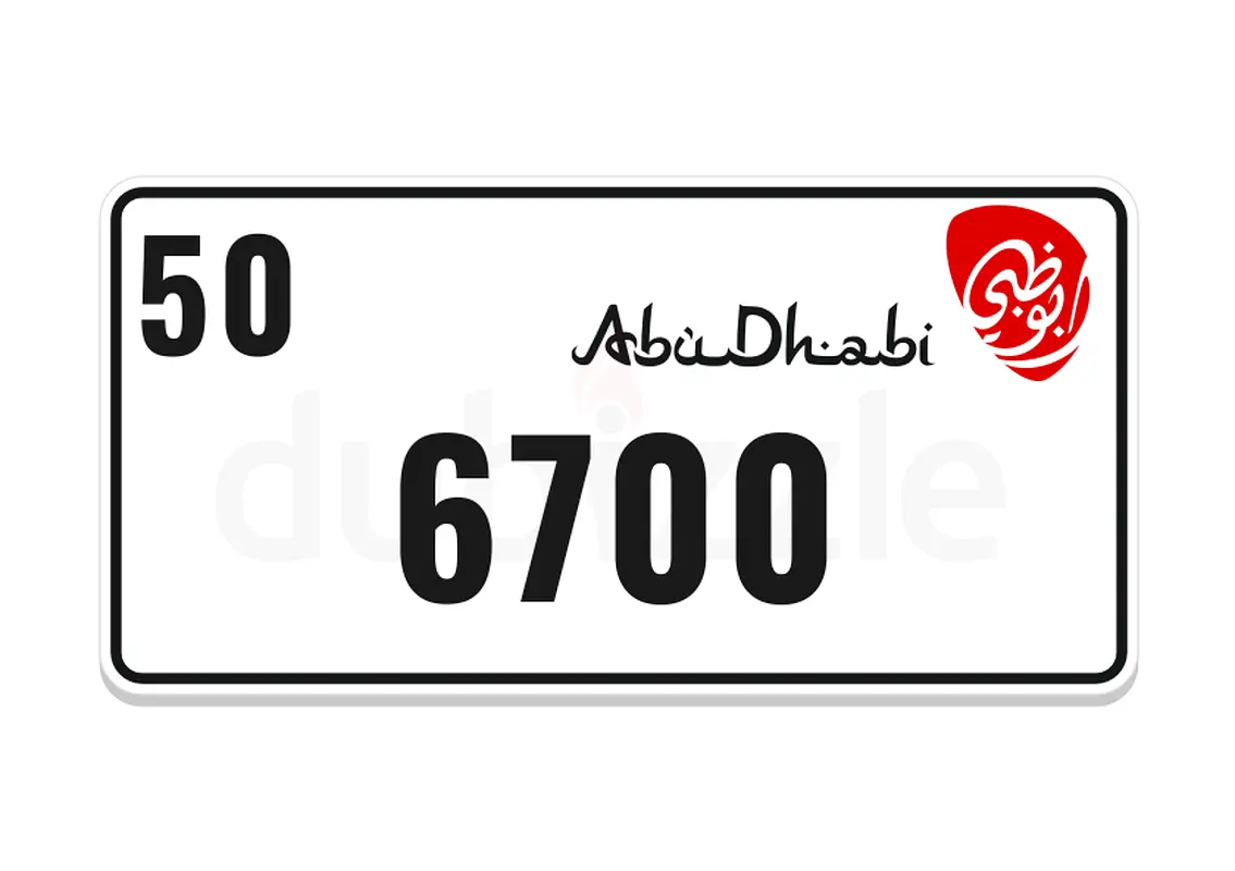 abudhabi vip plate with code 50, and consecutive digits; 6,7. and double zeros